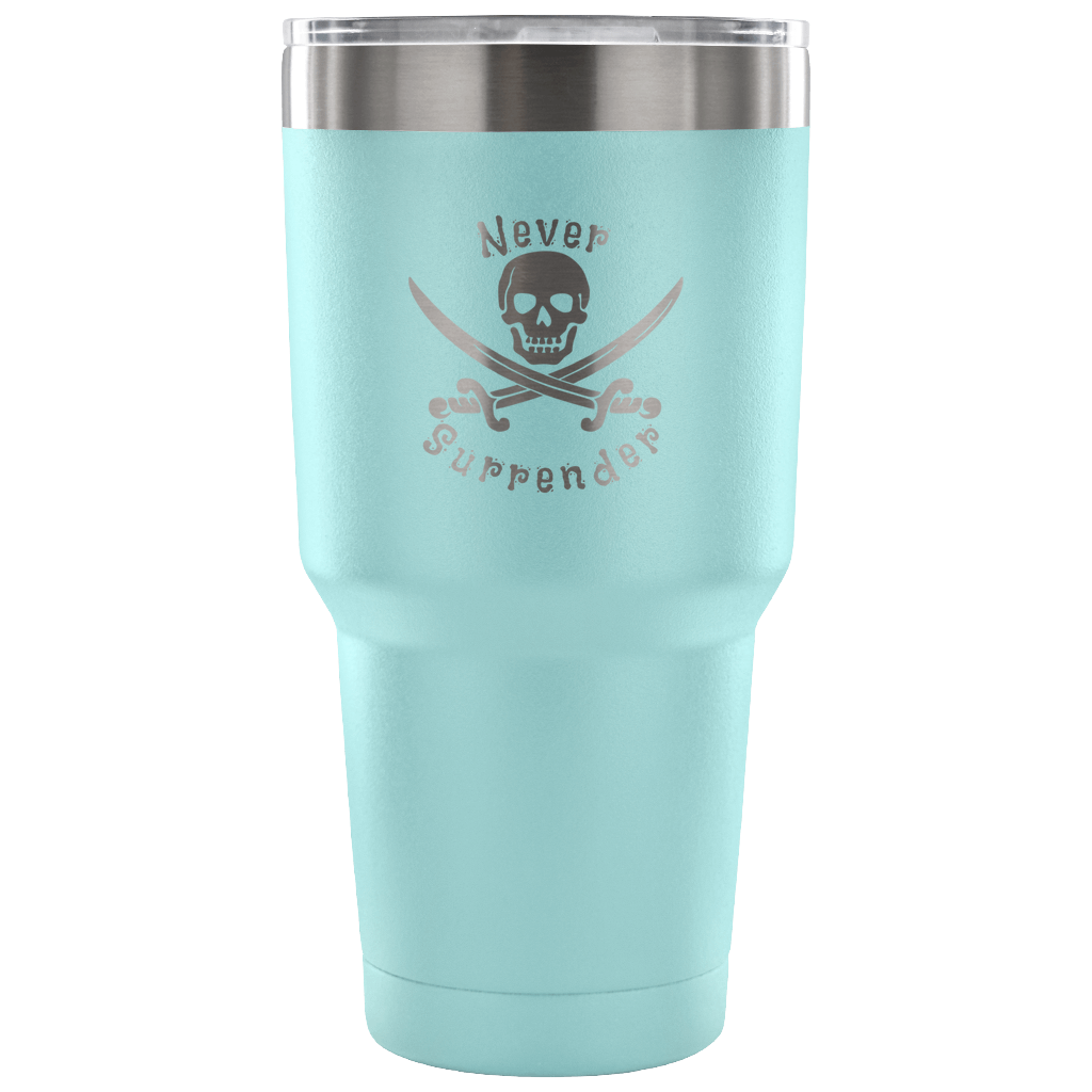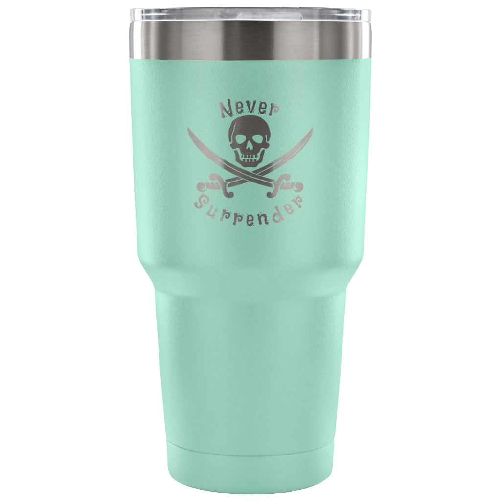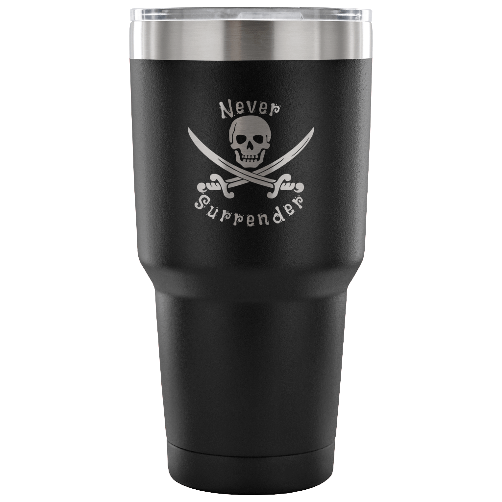 Never Surrender Pirate 30 Ounce Vacuum Tumbler (7 Color Options)