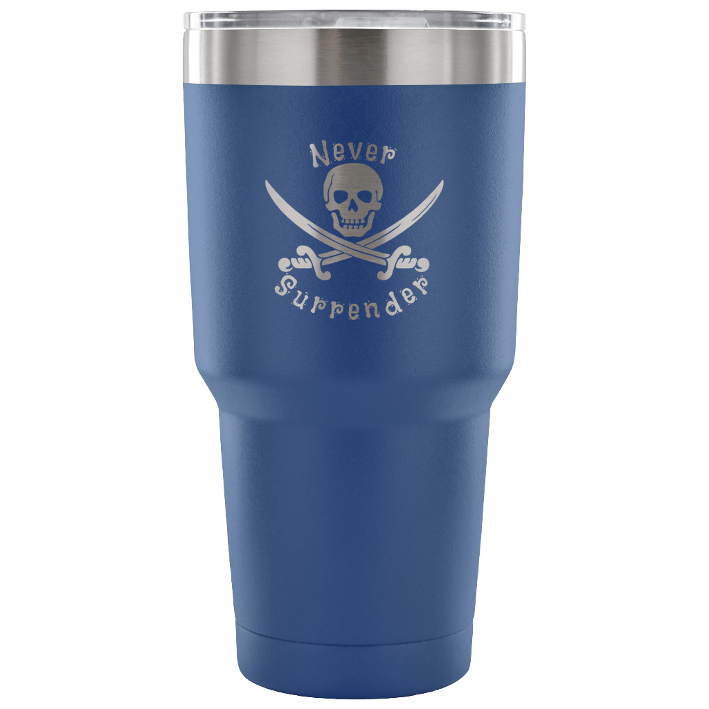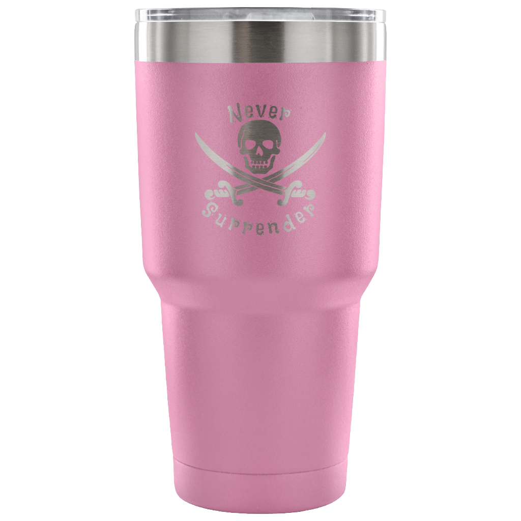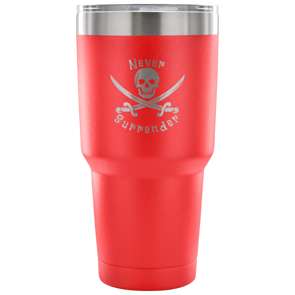 Never Surrender Pirate 30 Ounce Vacuum Tumbler (7 Color Options)