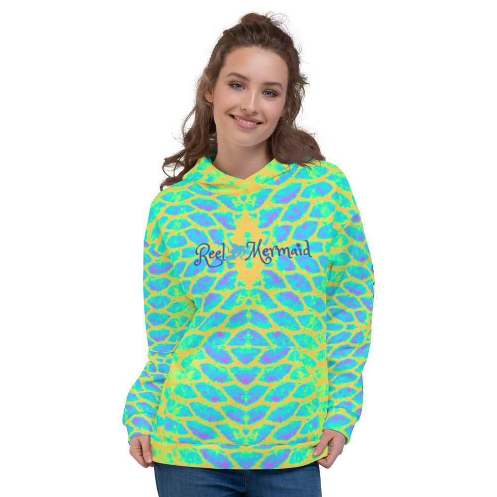 This comfy unisex hoodie has a soft outside with a vibrant print, and an even softer brushed fleece inside. The hoodie has a relaxed fit, and it's perfect for wrapping yourself into on a chilly evening.
